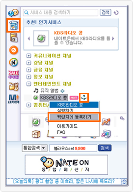 ¨è KBS¶óµð¿À Äá¿¡¼ ¸¶¿ì½º ¿À¸¥ÂÊÀ» Ŭ¸¯Çϰí, Äü·±Ä¡¿¡ µî·ÏÇϱ⸦ Ŭ¸¯Çϸé Äü·±Ä¡¿¡