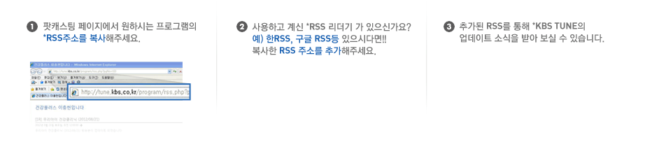 Really Simple Syndication ¶Ç´Â Rich Site SummaryÀÇ ¾àÀÚÀÔ´Ï´Ù. ¿øÇÏ´Â Á¤º¸°¡ Àִ ȨÆäÀÌÁö¿¡ »ç¿ëÀÚ°¡ ÀÏÀÏÀÌ ¹æ¹®À» ÇÏ´Â °ÍÀÌ ¾Æ´Ï¶ó ¿øÇÏ´Â Á¤º¸¸¦ ³»°¡ ¿øÇÏ´Â °ø°£¿¡¼ ÇѲ¨¹ø¿¡ º¼ ¼ö ÀÖ´Â ±â´ÉÀÌ¿¹¿ä!