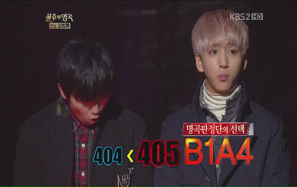 김범룡의 극찬까지 받은 B1A4의 무대는 앞서 404표를 획득하며 우승의 가도를 달리고 있던 부활의 정동하를 단 1표 차이인 405표를 받으면서 극적인 승리를 이루었다. 또 B1A4는 <불후의 명곡> 이후 처음으로 거머쥔 최종 승리에 감격에 겨운 모습을 보였다.