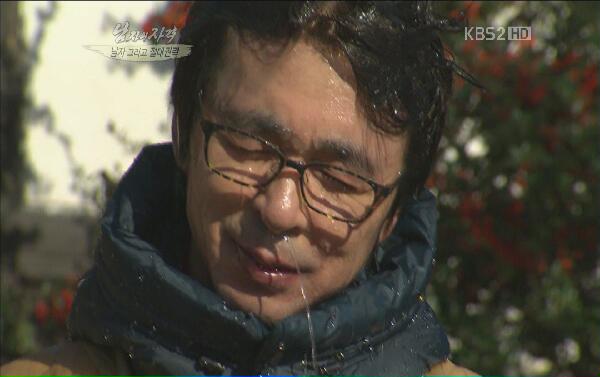 이에 제일 먼저 나선 것은 김국진을 리더로 뽑았던 주상욱으로 그는 거침없이 김국진의 얼굴에 물바가지로 물을 뿌렸다. 이어 남격 멤버들에게 차례대로 영하 5도의 날씨에서 물세례를 받은 김국진은 멘탈이 붕괴된 듯한 몰골로 웃음을 자아냈다.