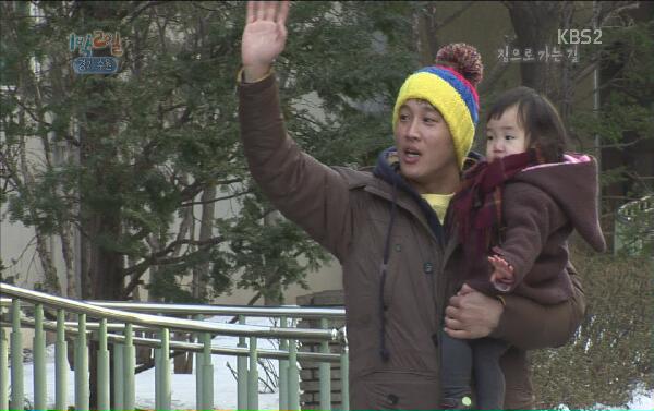 이 때 아빠 차태현이 도착하는 것을 미리 알고 차태현의 부인과 아들 차수찬 군, 딸 차태은 양이 아파트 입구에 나와 있었다. 수찬 군과 태은 양은 아빠 차태현을 보자마자 반가움을 드러내며 한달음에 차태현에게 달려와 안겼다. 이를 보던 이수근은 "이래서 차태현이 빨리 집에 가고 싶어 했구나."라며 부러움 섞인 눈길을 보냈다.