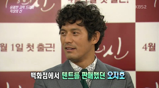 이 날 방송에서 오지호는 "연기 이외의 다른 직업을 가져 본 적이 있느냐."는 리포터의 질문에 "데뷔 전 백화점에서 아주머니들을 상대로 텐트를 판 적이 있다."고 고백해 놀라움을 자아냈다.