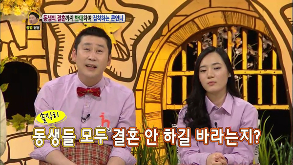 이에 함께 출연한 소영 씨의 큰 언니는 MC 신동엽으로부터 "동생들이 결혼하지 말고 같이 살았으면 좋겠느냐?"는 질문을 받고 1초도 망설이지 않은 채 그렇다고 답해 스튜디오를 깜짝 놀라게 만들었다.