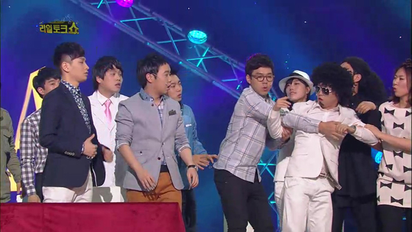 이어 황현희는 쌈디에게 "그러는 너는 왜 예능을 하느냐. <뮤직뱅크>로 가라"고 거침없는 멘트를 날려 쌈디를 당황케 했다. 게다가 무대 위로는 '용감한 녀석들'의 박성광이 "이센스는 어디에 있느냐?"고 무대위로 난입해 더욱 좌중을 포복절도하게 만들었다.