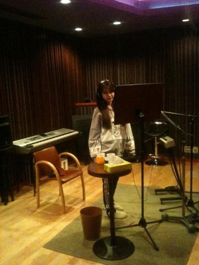 아이유의 녹음실 현장 사진이 공개되면서 화제를 모으고 있다.