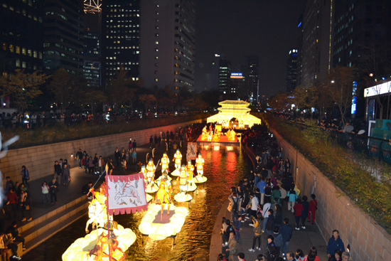 이번 등축제는 청계광장 모전교(5호선 광화문역 5번출구)에서 청계3가 관수교(1호선 종로3가역 12~14번 출구)까지 총 1.3km구간에 총 3만 개의 등이 전시되는 화려한 등불의 향연이 펼쳐진다. 이는 작년보다 1.5배 확장된 것으로서 역대 최대 규모다.