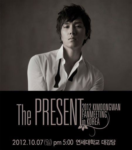 지난 8월 대만에서의 첫 단독 팬미팅을 성황리에 마친 김동완은 오는 7일(일) 오후 5시 연세대학교 대강당에서 ‘2012 KIM DONG WAN Fanmeeting