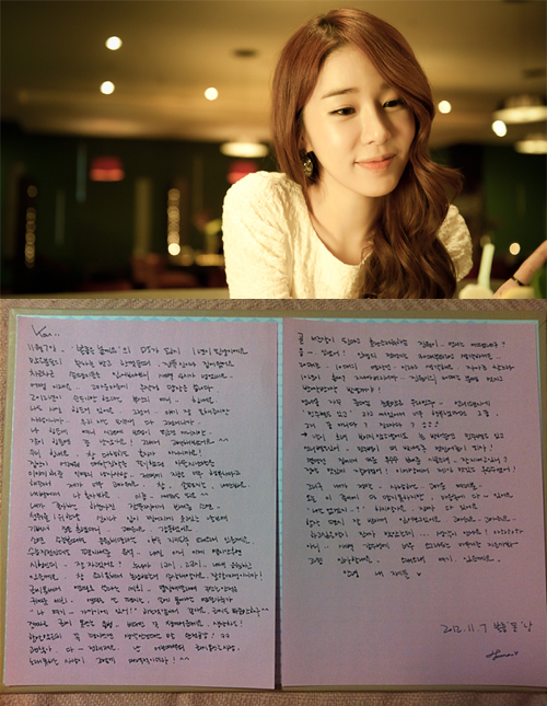 유인나가 올린 사진은 자신이 DJ를 맡고 있는 KBS Cool FM <유인나의 볼륨을 높여요>의 DJ가 된지 1주년을 기념해 팬들에게 쓴 두장의 편지를 찍어 올린 것으로 유인나가 직접 자필로 작성해 더욱 눈길을 끌고 있다.