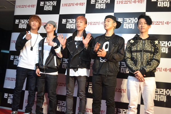 지난 15일 서울 용산CGV에서 열린 영화 '돈 크라이 마미'(김용한 감독, 유선 남보라 주연) VIP시사회에 참석한 5인조 그룹 빅스타.
