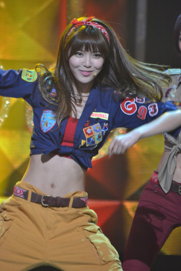지난 주 방송된 뮤직뱅크에서 오랜만에 컴백무대를 가진 월드 아이돌 스타 소녀시대가 'I got a boy' (아이 갓 어 보이)를 부르고 있다. 리허설 중인 소녀시대의 멤버 수영의 모습이다.