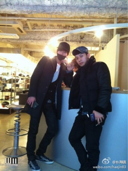 공개 된 사진은 박해진과 허경환이 지난 3일 일본 오사카 팬미팅 현장에서 함께 찍은 사진으로 두 사람은 비슷한 블랙 계통의 옷을 차려입은 채 모자를 쓴 패션마저 닮아있다. 또 동시에 외모 역시 흡사한 모습으로 형제가 아닐까 하는 착각마저 불러 일으키고 있다.