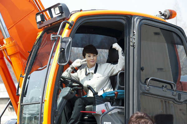 작업복 차림의 김혜수는 전진 후진 자유자재로 포클레인을 몰며 현장관계자들도 감탄할 만한 운전 실력을 보였다. “(포클레인 운전) 해보니 되던데요?”라며 자신 있게 첫 포클레인 운전 소감을 밝힌 김혜수. 상대 장규직 역의 오지호를 비롯한 배우들과 제작진들은 “진짜 미스김이네~”라며 ‘능력자’ 김혜수에게 박수를 보냈다.