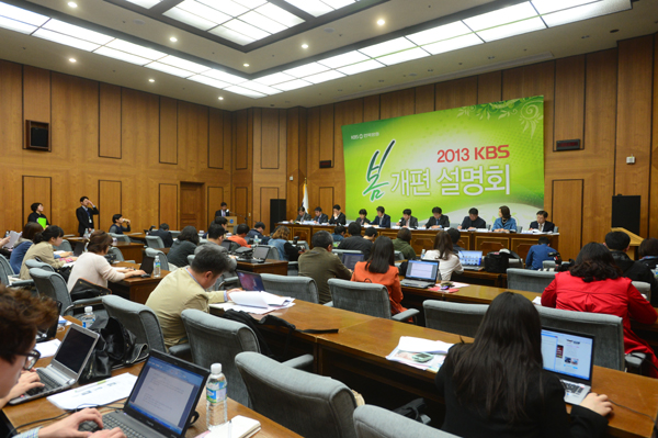 2013년 KBS 봄 개편 설명회가 오후 오후 서울 영등포구 여의도동 KBS본관 국제회의실에서 열렸다. KBS 김홍식 홍보실장의 사회로 진행된 1부에서는 KBS TV와 라디오 프로그램의 제작과 편성을 책임지고 있는 본부장, 센터장, 국장들이 참석하여 이번 개편의 방향과 주요 프로그램에 대한 설명을 하였고 곧이어 박은영 아나운서의 사회로 박미선, 이영자, 김동규, 이소라, 정진운 등 새로이 시작되는 주요 프로그램 진행자가 직접 나와 소감을 밝히는 자리를 가졌다.
