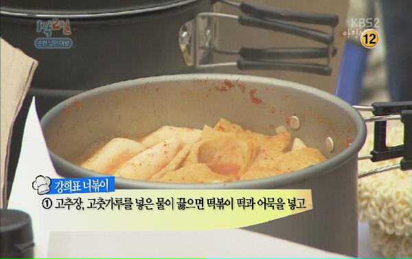 이 날 방송에서 최강희는 특별히 1박 2일 멤버들을 위해 집에서 미리 야심차게 준비해온 재료로 아침상 차리기에 나섰다. 이어 최강희가 선택한 메뉴는 바로 라면과 떡볶이, 오뎅 등을 넣은 일명 '너볶이'.