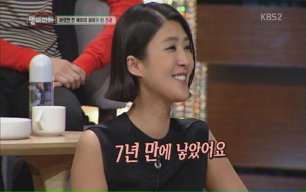 이 날 방송에서 MC 이영자와의 친분으로 출연한 홍진경은 "(결혼 후) 7년 만에 딸을 낳았다."며 지금은 28개월이 된 딸 아이의 이야기를 꺼냈다. 그녀는 "아빠 엄마를 골고루 닮았다. 아빠의 얼굴을 닮았고 키는 나를 닮았다."고 딸에 대한 자랑을 늘어놓았다.